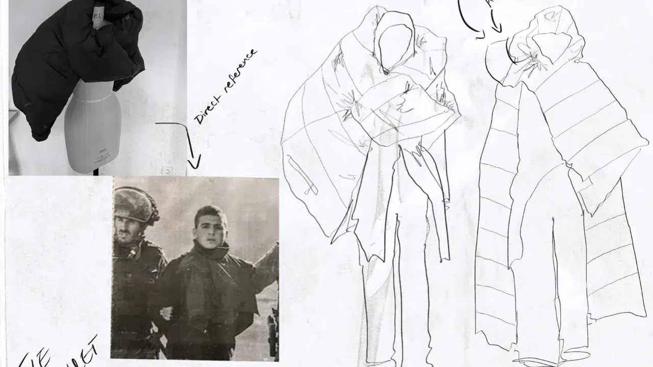 Yunan-Filistinli tasarımcı Nafsika Skourti, modayı bir “hafıza taşıyıcısı” olarak konumlandırıyor. “Varlığın izleri” koleksiyonunda aile fotoğrafları, el yazıları ve tarihsel belgeler doğrudan tasarıma dönüşüyor.