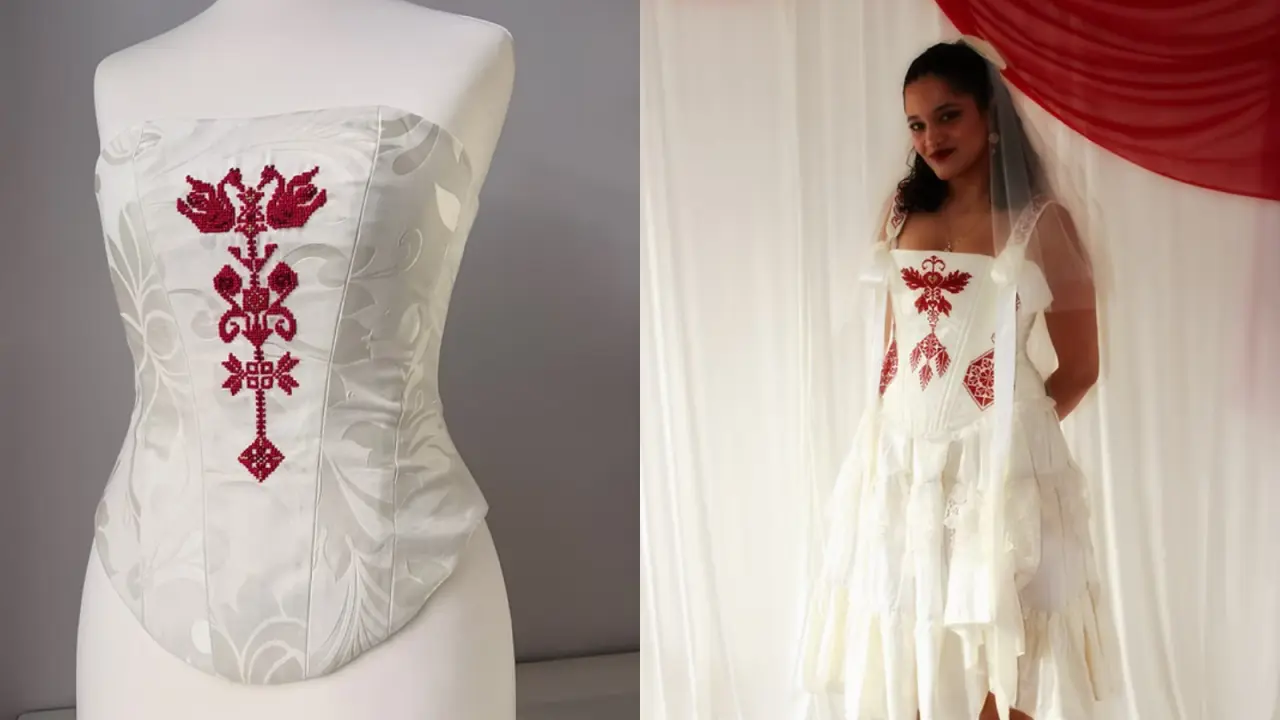 İngiliz-Filistinli tasarımcı Leena Sobeih, kişisel bir töreni kültürel bir manifestoya dönüştürdü. Manchester’daki düğününde tasarladığı korse, Filistin nakış sanatı “Tatreez” ile kimlik ve hafızayı birleştirdi.