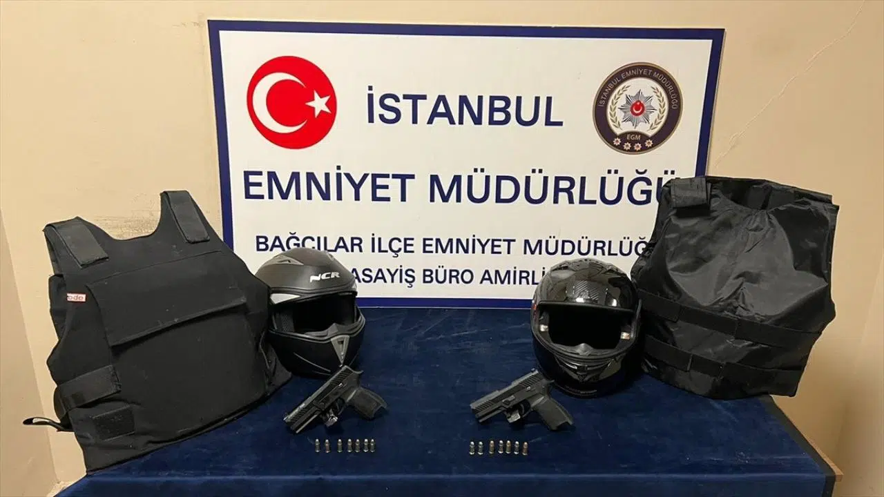 Araç ve şüphelilerin üstünde yapılan aramada 2 ruhsatsız tabanca ile 2 çelik yelek, 14 mermi ve 2 motosiklet kaskı ele geçirildi.