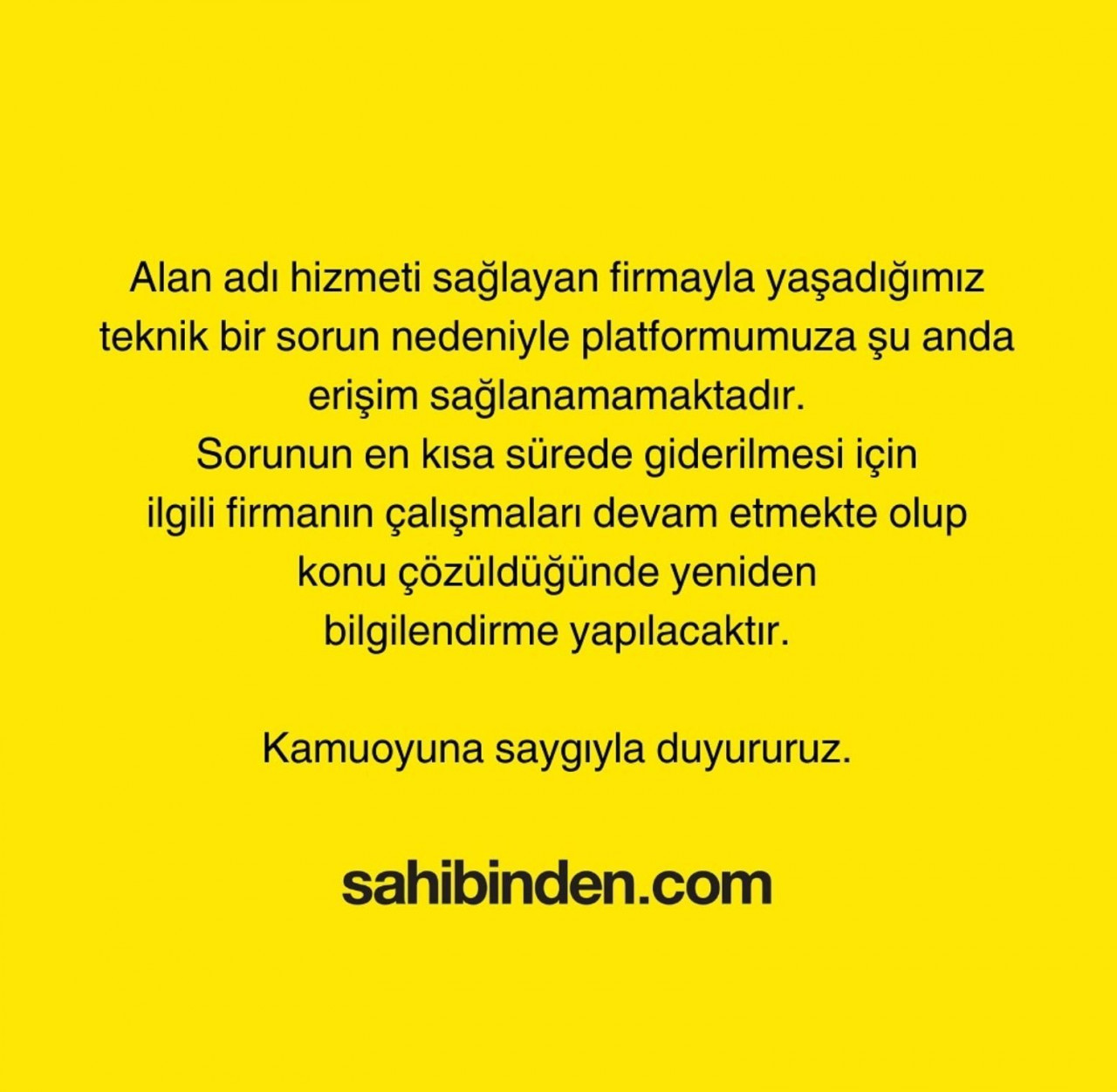 "Alan adı hizmeti sağlayan firmayla yaşadığımız teknik bir sorun nedeniyle platformumuza şu anda erişim sağlanamamaktadır.