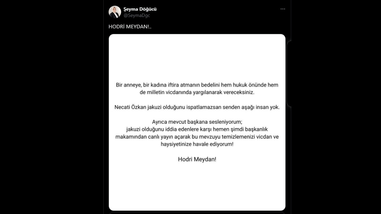 Medyascope yayınında konuşan İBB Başkanı Ekrem İmamoğlu'nun kampanya direktörü Necat Özkan, İstanbul Sancaktepe Belediyesi’nde seçimi CHP’li Alper Yeğin’e kaybeden AK Partili Şeyma Döğücü’nün başkanlık katına jakuzi yaptırdığını iddia etmişti.