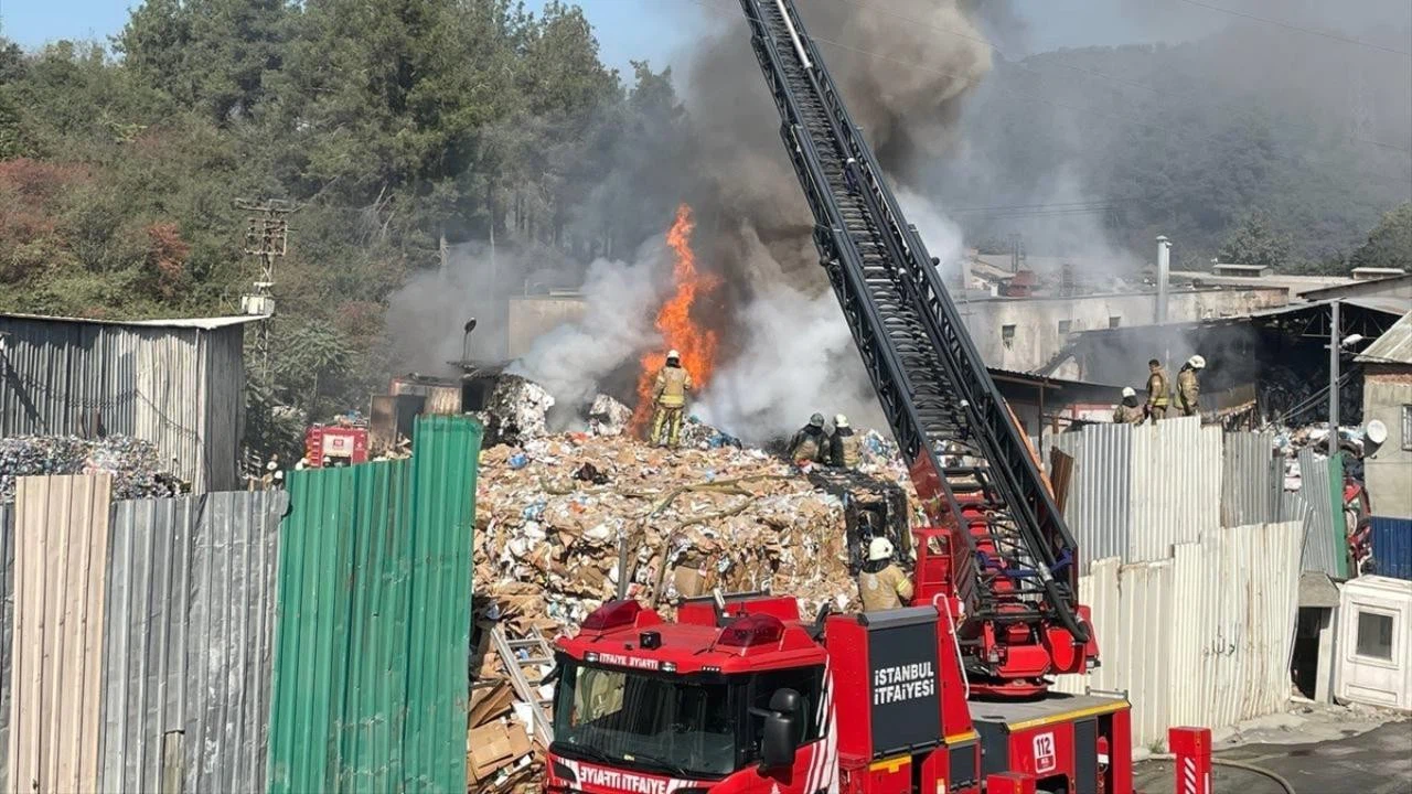 Ayazağa'da, içinde plastik malzemelerin de bulunduğu kağıt deposunda henüz belirlenemeyen nedenle yangın çıktı.