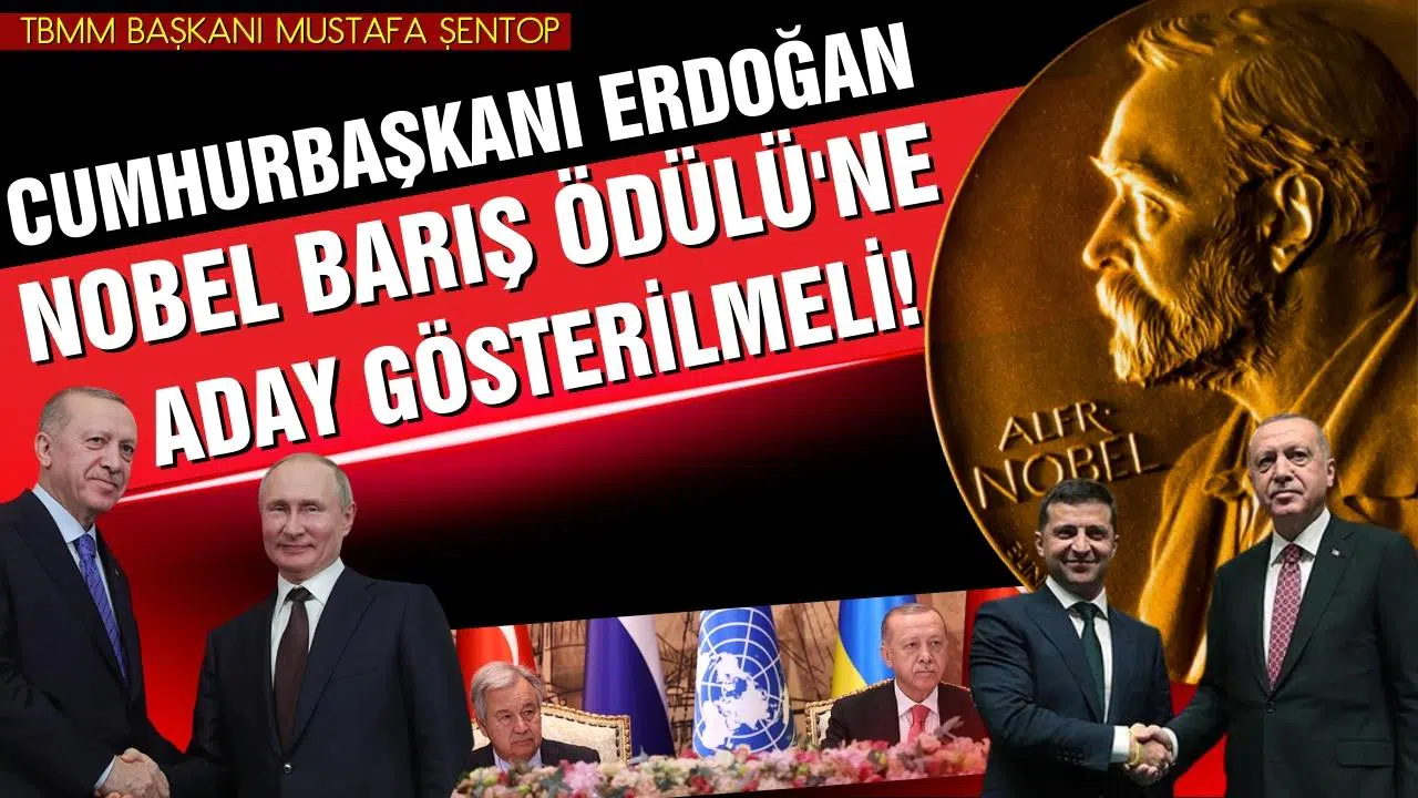 TBMM başkanı Mustafa Şentop ve AK Parti'li vekiller, Cumhurbaşkanı Erdoğan'ın Ukrayna-Rusya savaşındaki tutumu, yapılan tahıl koridoru anlaşması ve sığınmacılar konusundaki başarılı politikası nedeniyle Nobel Barış Ödülü adaylığı için harekete geçti. Şentop, başka ülke parlamentolarından milletvekillerinin de benzer girişimi olduğunu söyledi. Şentop adaylık sürecinin ocak sonuna kadar süreceğini anımsattı.