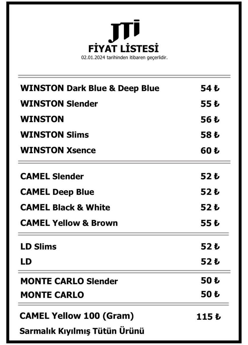 Son zamla birlikte bir sigara grubundaki en ucuz sigara fiyatı 50 TL'ye çıktı. En pahalı sigara ise 58 TL ile 60 TL arasından satılmaya başlandı.