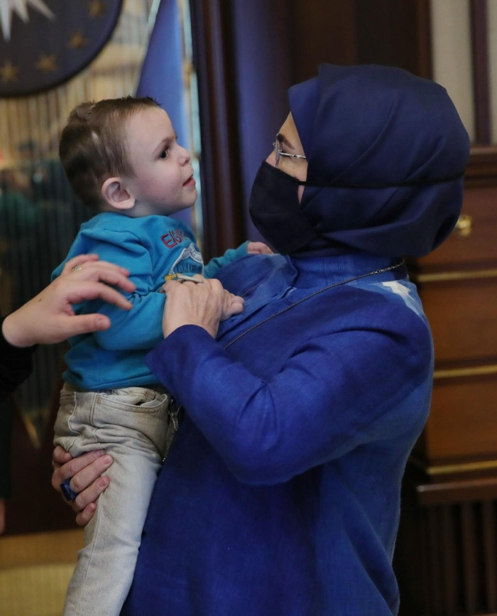 Erdoğan çifti, ziyarette Derman ve Yiğit Evrensel kardeşler ile yakından ilgilenerek, sağlık durumları hakkında bilgi aldı. Ömer ve Fatma Evrensel çifti de çocuklarının tedavi sürecinde desteklerini esirgemeyen Erdoğan çiftine teşekkür etti.