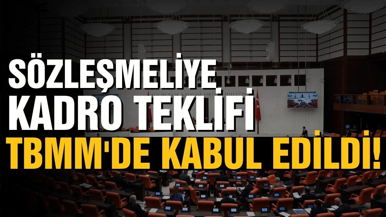 Sözleşmelilere kadro düzenlemesinde Meclis, ilk mesaisini tamamladı. Binlerce sözleşmeli çalışanın kadroya geçişini öngören teklif, Meclis Plan ve Bütçe Komisyonu'nda kabul edildi.