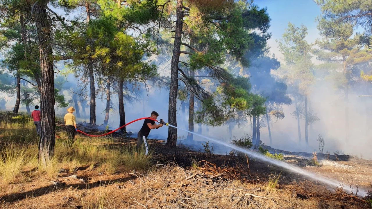 İlk belirlemelere göre, 5 dönümlük kızılçam ormanı zarar gördü.