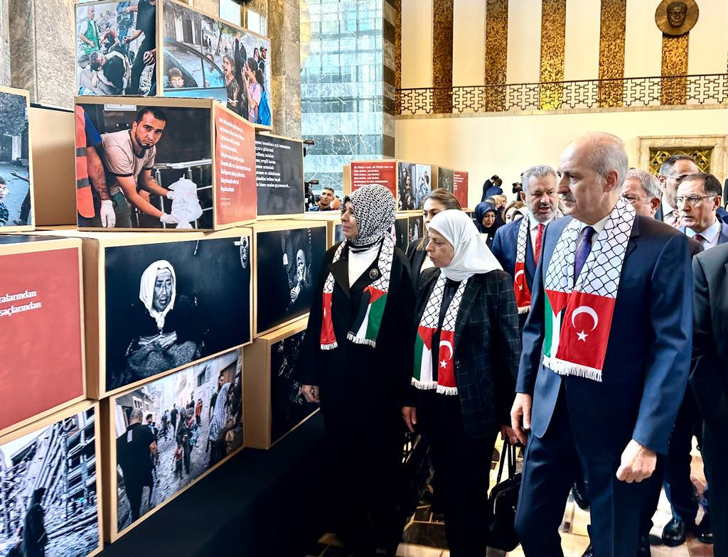 Gazze'de yaşanan insanlık dramını konu alan fotoğraf sergisini gezen Kurtulmuş, ardından konuşmasını yapmak üzere kürsüye çıktı.