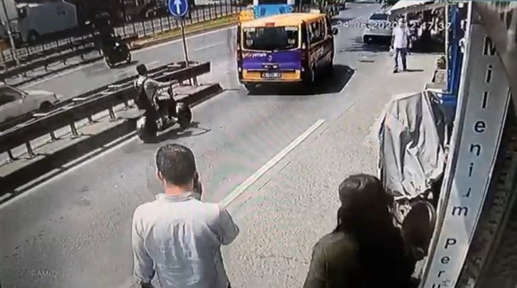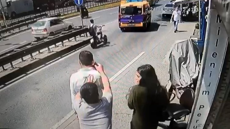 Taksim'de kız arkadaşıyla kaldırımda yürüyen genç bir adamın cep telefonunu konuştuğu esnada çaldılar. Kız arkadaşının şoke olduğu olayda neye uğradığına şaşıran adam dakikalarca kapkaççıları kovaladı ancak yakalayamadı. Korku dolu o anlar ise güvenlik kameralarına yansıdı.