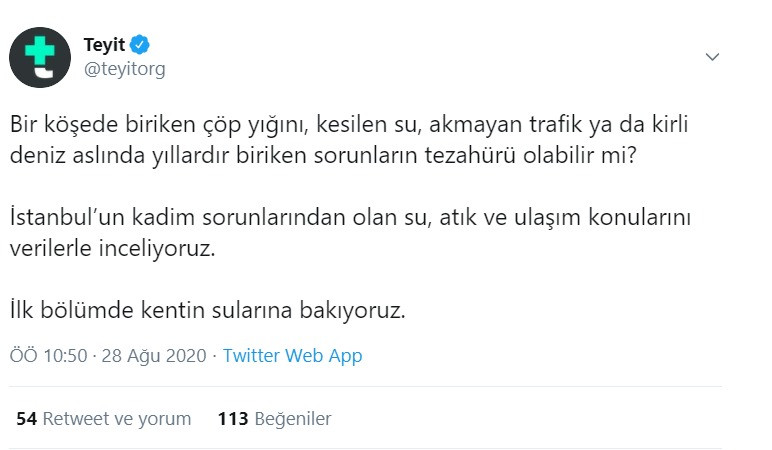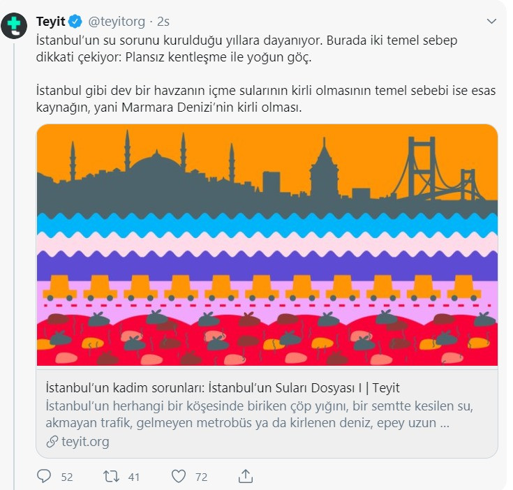 CHP yanlısı tutumuyla tanınan teyit.org kurumu, İstanbul'un su sorunlarını konu alan bir yazıya verdi.