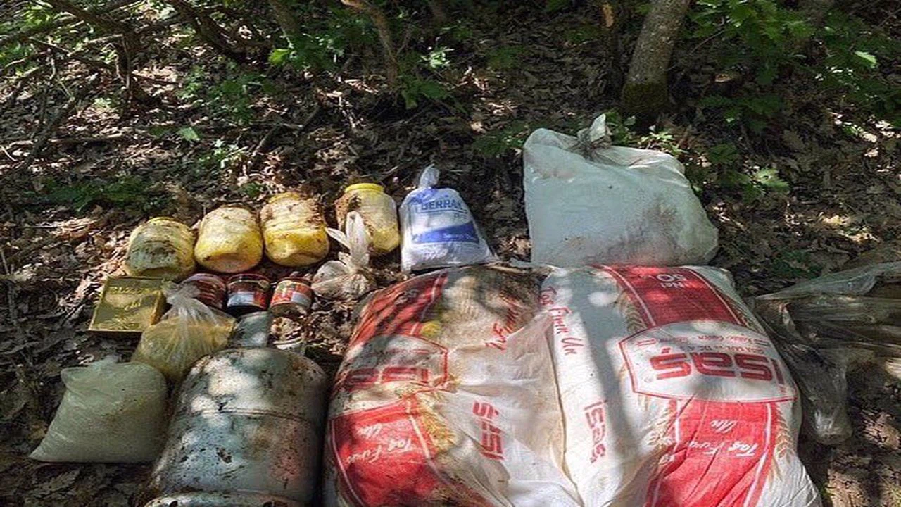 Sığınaklarda yapılan aramalarda, 2 büyük LPG tüpü, 100 metre naylon, 550 kilogram un, 50 kilogram şeker, 60 kilogram pirinç, 110 kilogram bulgur, 50 kilogram peynir, 20 kilogram zeytin, 30 kilogram makarna, 50 kilogram tuz, 25 kilogram sıvıyağ, 20 kilogram çay, 5 kilogram çikolata ve çok miktarda yaşam malzemesi ele geçirildi.