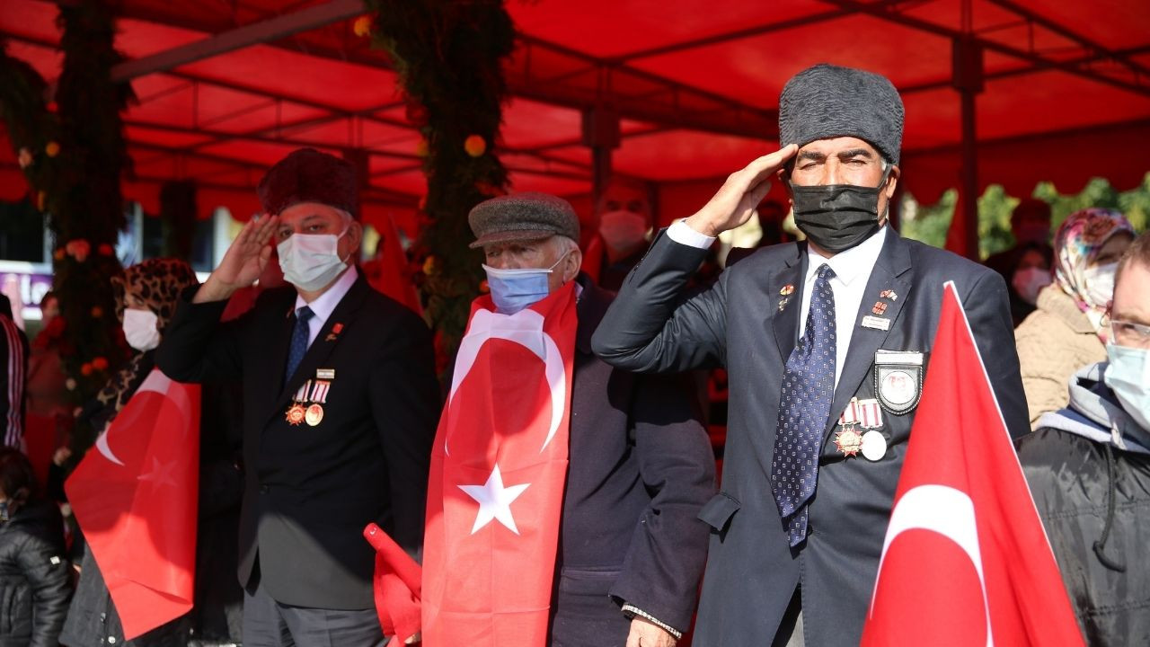 Törene katılan gazilerimiz Türk Yıldızları Akrobasi Timi'nin selamlama uçuşunu büyük bir ilgi ve gururla izledi.