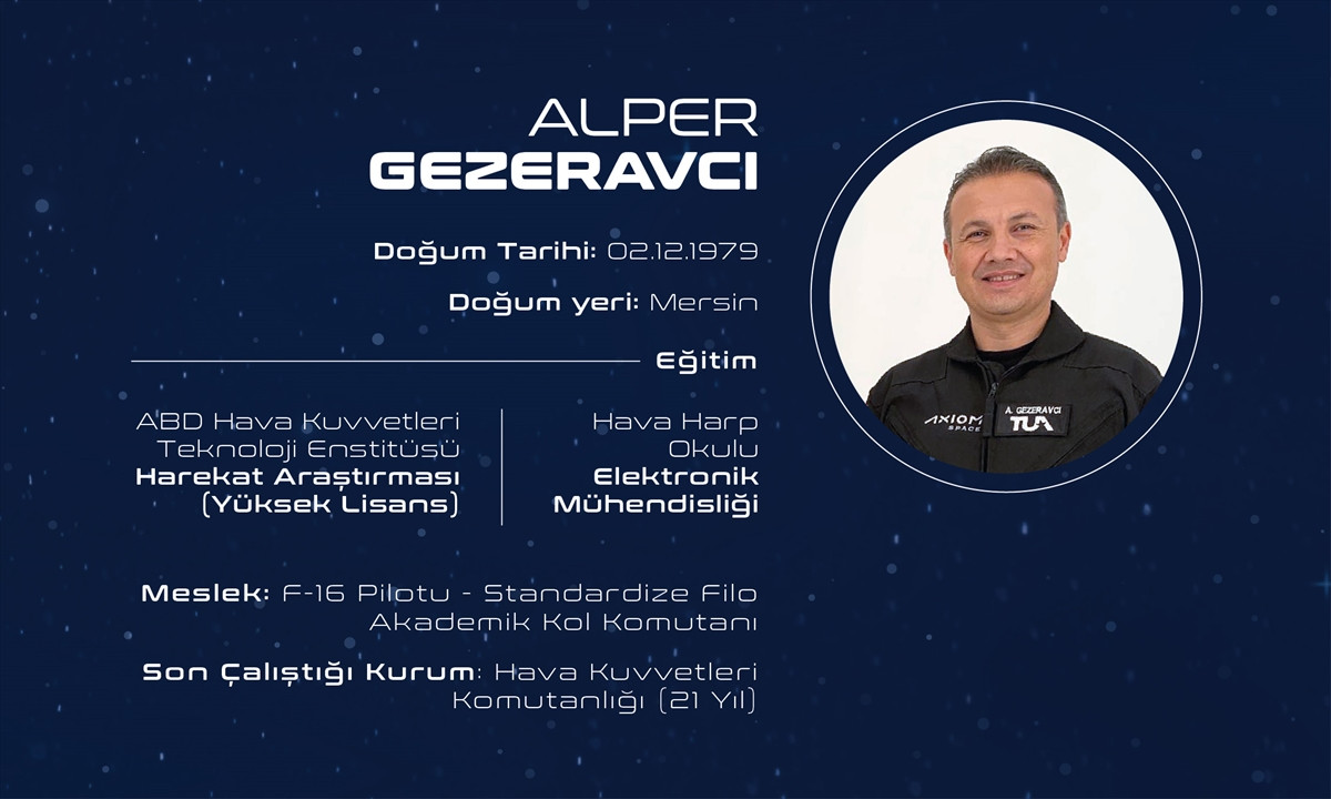 Alper Gezeravcı kardeşimiz Hava Kuvvetleri'nde önemli başarılara imza atmış kahraman bir Türk pilotumuz. Uluslararası Uzay İstasyonu'nda 14 gün kalacak. Yedek isim ise Tuva Cihangir Atasever.