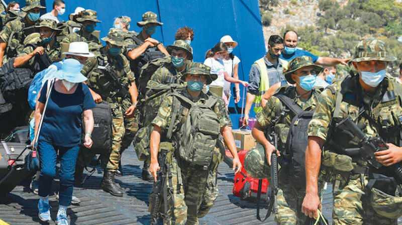 Yunanistan silahsız asker bile bulundurma yetkisi olmadığı adalara yaptığı sevkiyatları "egemenliğimiz tehdit ediliyor" diye savundu. Yunan basınına göre, Savunma Bakanlığı yetkilileri "Tehdit edilen bölgeler silahtan arındırılamaz. BM tüzüğünün 51. maddesine göre yasal savunma hakkımız var" iddialarında bulundu. Uzmanlara göre Yunanistan'ın kameralar önündeki korsan asker sevkiyatı Türkiye'ye siyasi, hukuki ve askeri müdahale hakkı veriyor.