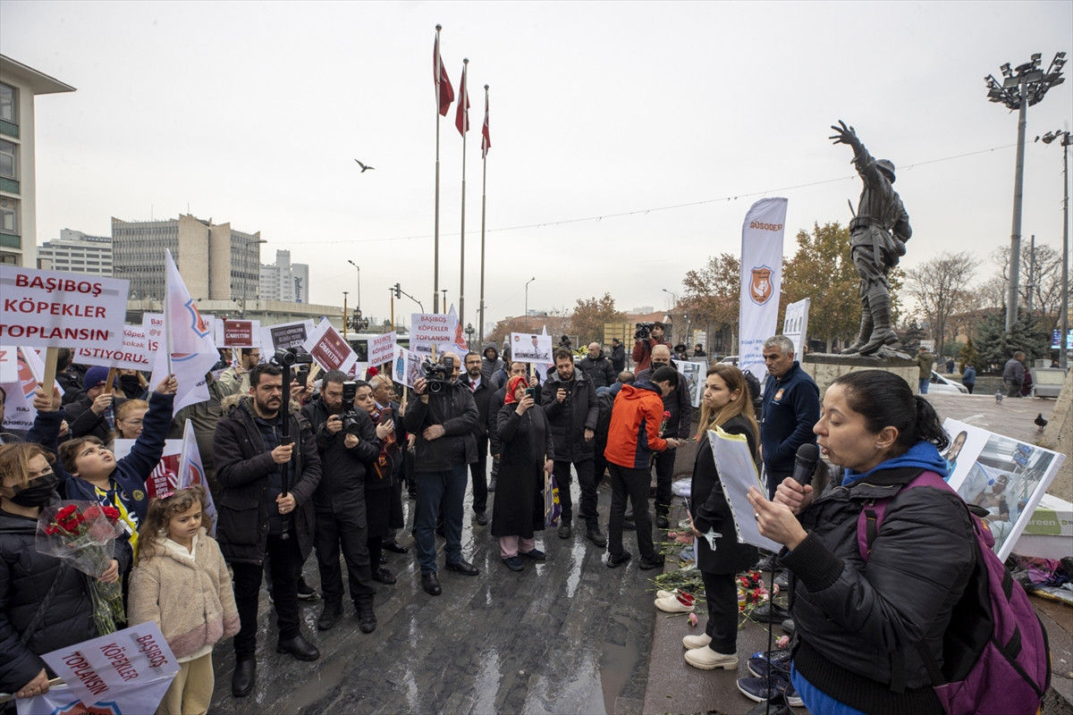 Dernek Başkanı Murat Pınar, Ulus Meydanı'ndaki basın açıklamasında, irade sahibi olmayan, kendisine sorumluluk yüklenemeyen ve iç güdüleriyle hareket eden hiç bir hayvana düşman olunamayacağını belirtti.