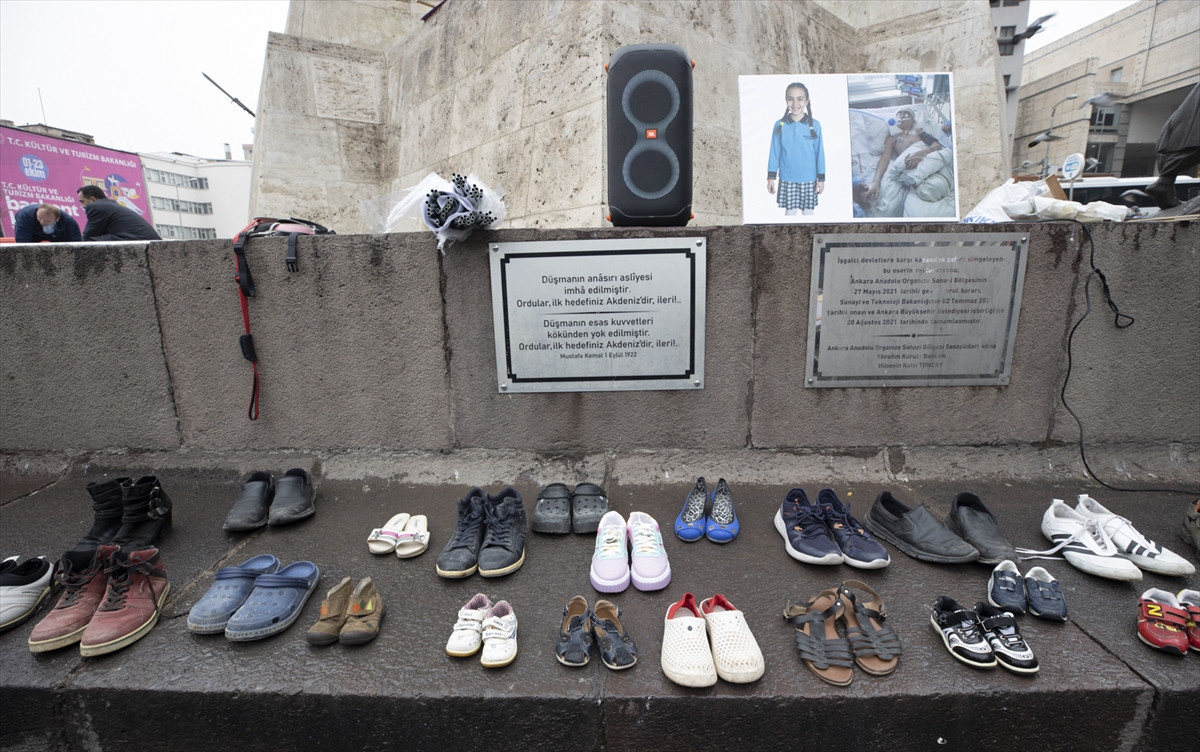 Başıboş köpeklerin saldırıları nedeniyle hayatlarını kaybedenler, karanfillerle ve temsili ayakkabılarla anıldı.