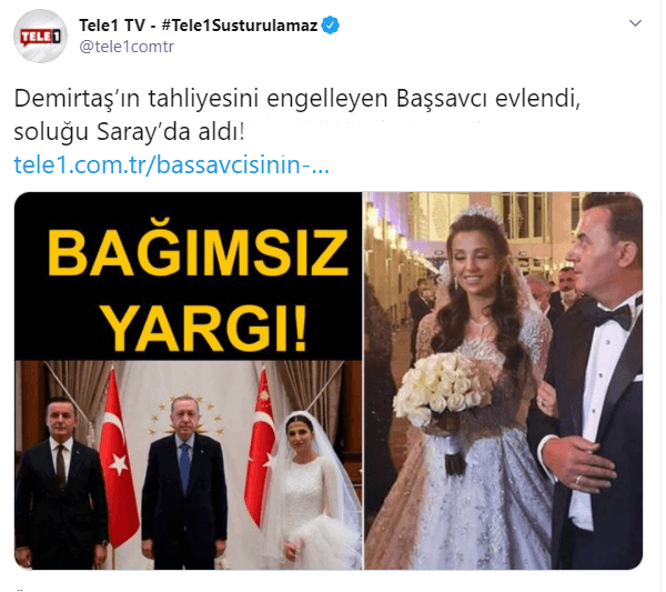 Ankara Cumhuriyet Başsavcısı Yüksel Kocaman ve eşi Ayça Dursun’un en mutlu gününde terör sevdası kabaran Tele 1, tutuklu HDP eş Genel Başkanı Selahattin Demirtaş üzerinden hedef gösterdi.