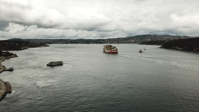 Gemi, yaklaşık 2 saatte boğaz geçişini Kıyı Emniyeti Kurtarma römorkörü eşliğinde tamamladı.