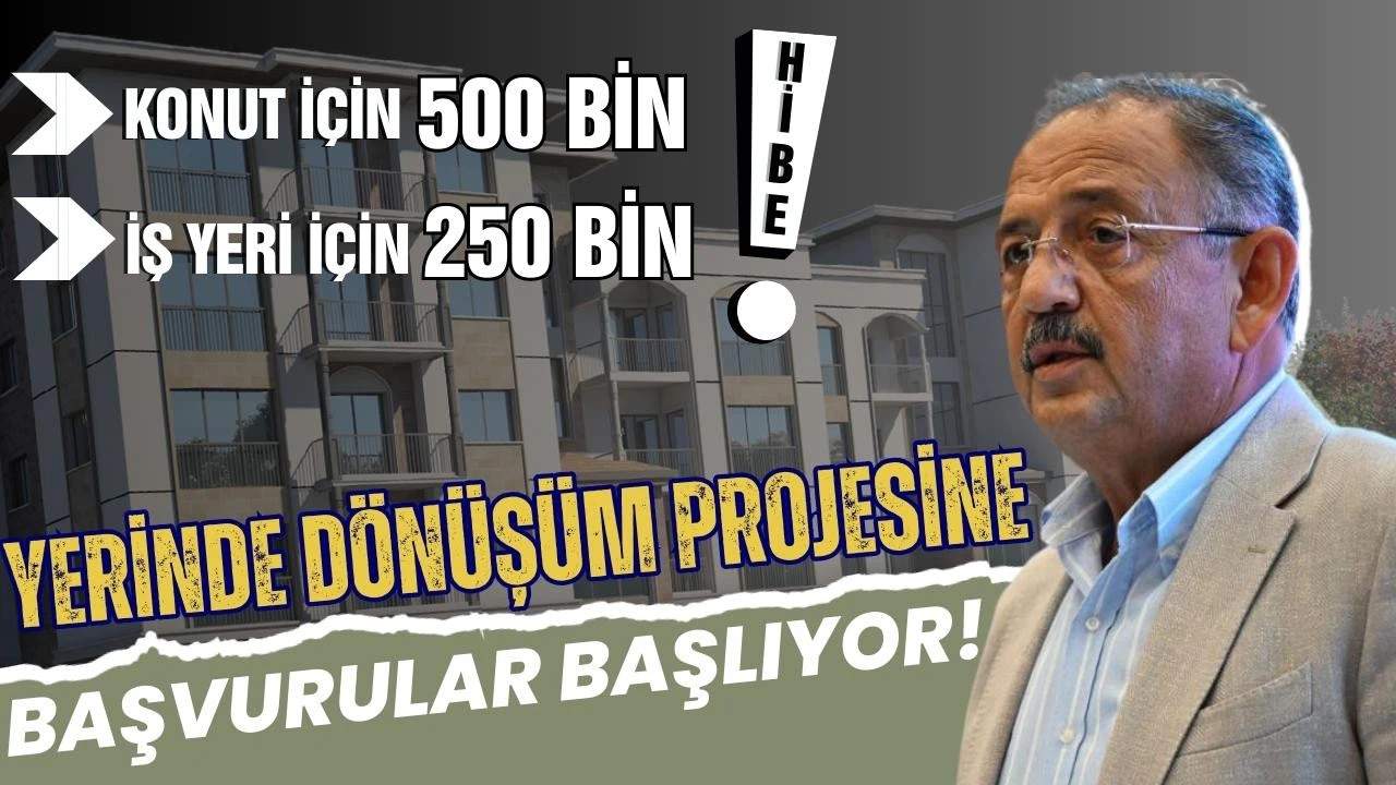Çevre, Şehircilik ve İklim Değişikliği Bakanlığı'nın denetiminde yerinde dönüştürülecek konutlara 500 bin lira, iş yerlerine 250 bin lira hibe verilecek.
