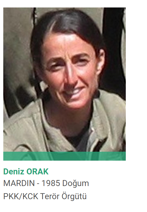Terörden Arananlar Listesi'nde 2 milyon lira ödülle Yeşil kategoride aranan, Hira kod adlı Deniz Orak adındaki terörist olduğu tespit edildi.