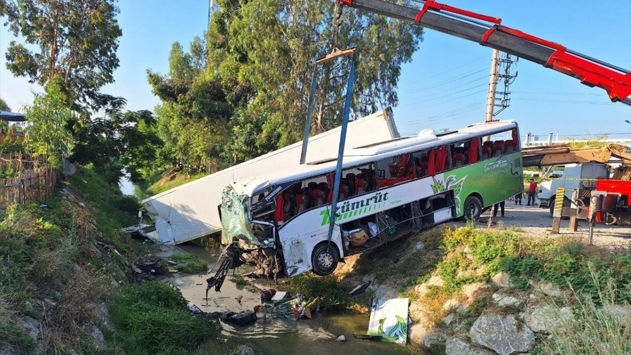 Savrulan otobüs, yol kenarındaki dorseye çarpıp dere yatağına devrildi.