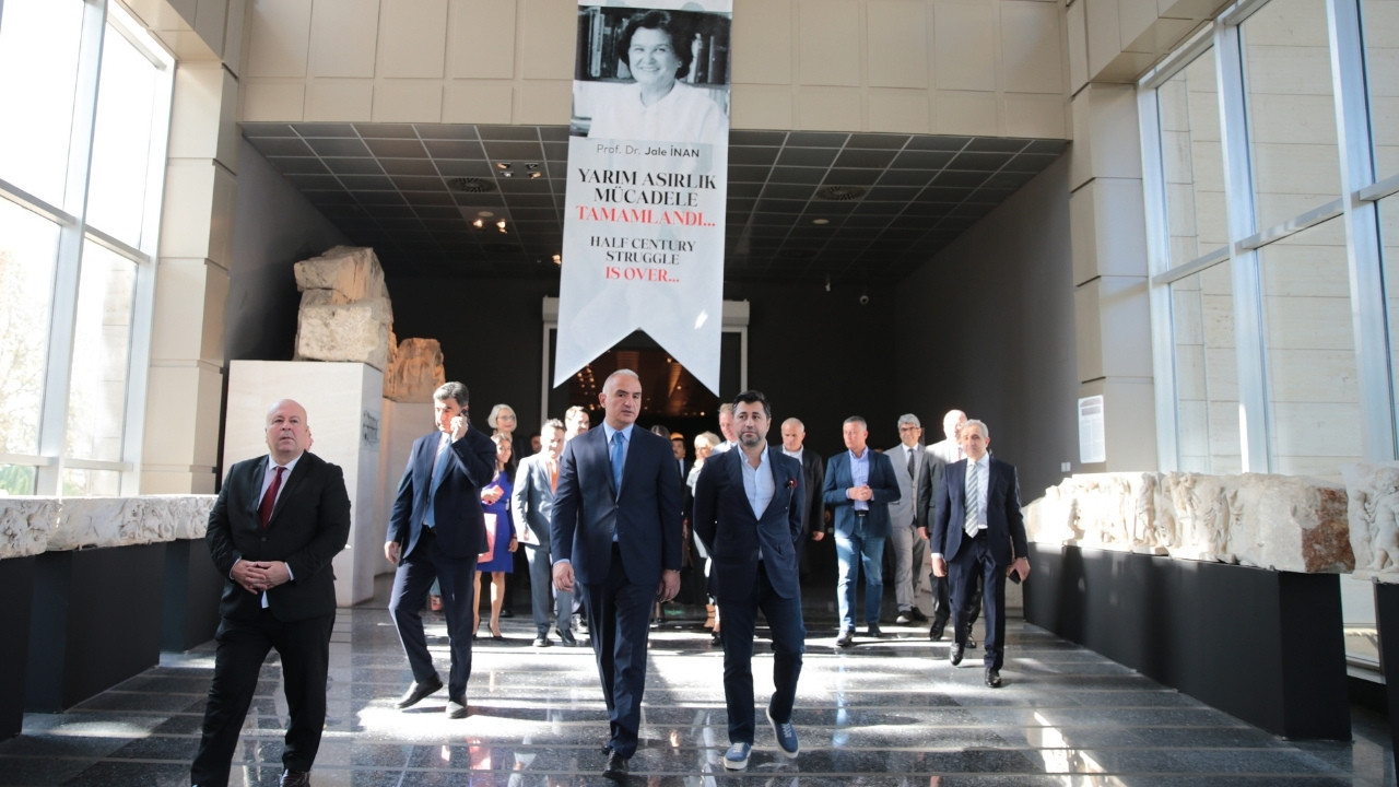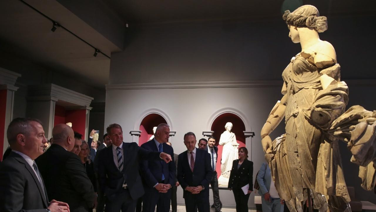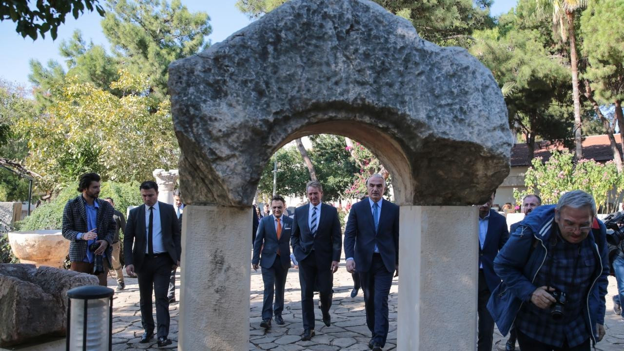 Bakan Ersoy, Büyükelçi Flake, Bogdanus ve protokol üyeleri, teslim sözleşmesinin imzalanmasının ardından Antalya Müzesini gezdi.