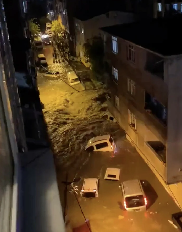 Başakşehir ilçesinde kameralara yansıyan görüntüler durumun ciddiyetini gözler önüne serdi. Bir sitede çekilen görüntülerde park halindeki araçların sürüklendiği görüldü.