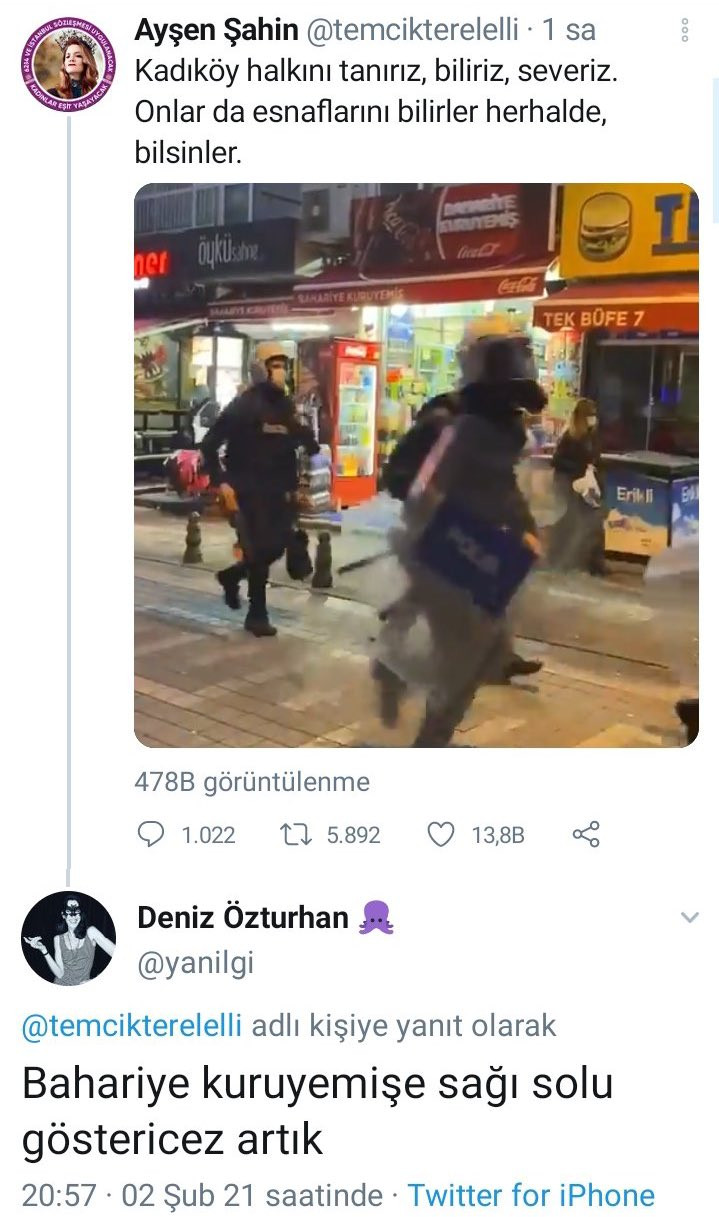 Ayrıca sosyal medyada pek çok kişi, polislere destek veren kişinin Bahariye Kuruyemiş'in işletmecisi değil tek büfe 7 isimli işletmenin sahibi olduğu iddia edildi.