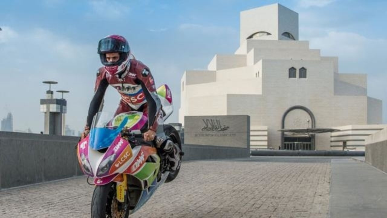 2021 FIM MotoGPTM Dünya Şampiyonası sezonunun Katar rallisi ile başlamasına geri sayım sürerken Katarlı sürücü Mashel Al-Naimi, ülkenin önemli müzelerinden biri olan İslam Eserleri Müzesi'nin dışında gösteri sürüşü yaptı.