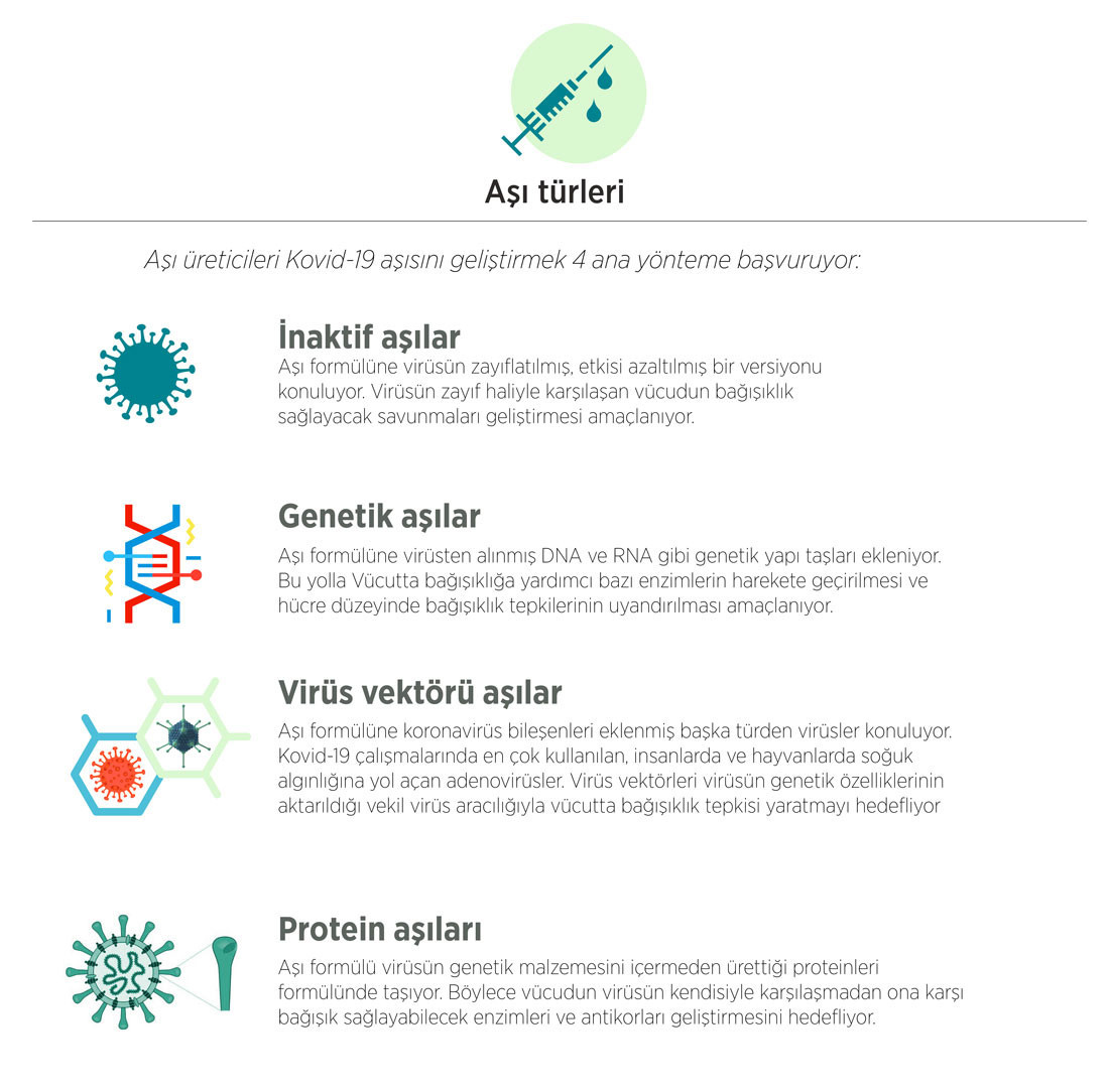 Aşı üreticileri Kovid-19 aşısını geliştirmek için 4 ana yönteme başvuruyor. Bu yöntemlerden en yaygın olanında, aşı formülüne virüsün zayıflatılmış, etkisi azaltılmış bir versiyonu konuluyor. Virüsün zayıf haliyle karşılaşan vücudun bağışıklık sağlayacak savunmaları geliştirmesini amaçlayan bu türden aşılara "inaktif aşı" adı veriliyor.
