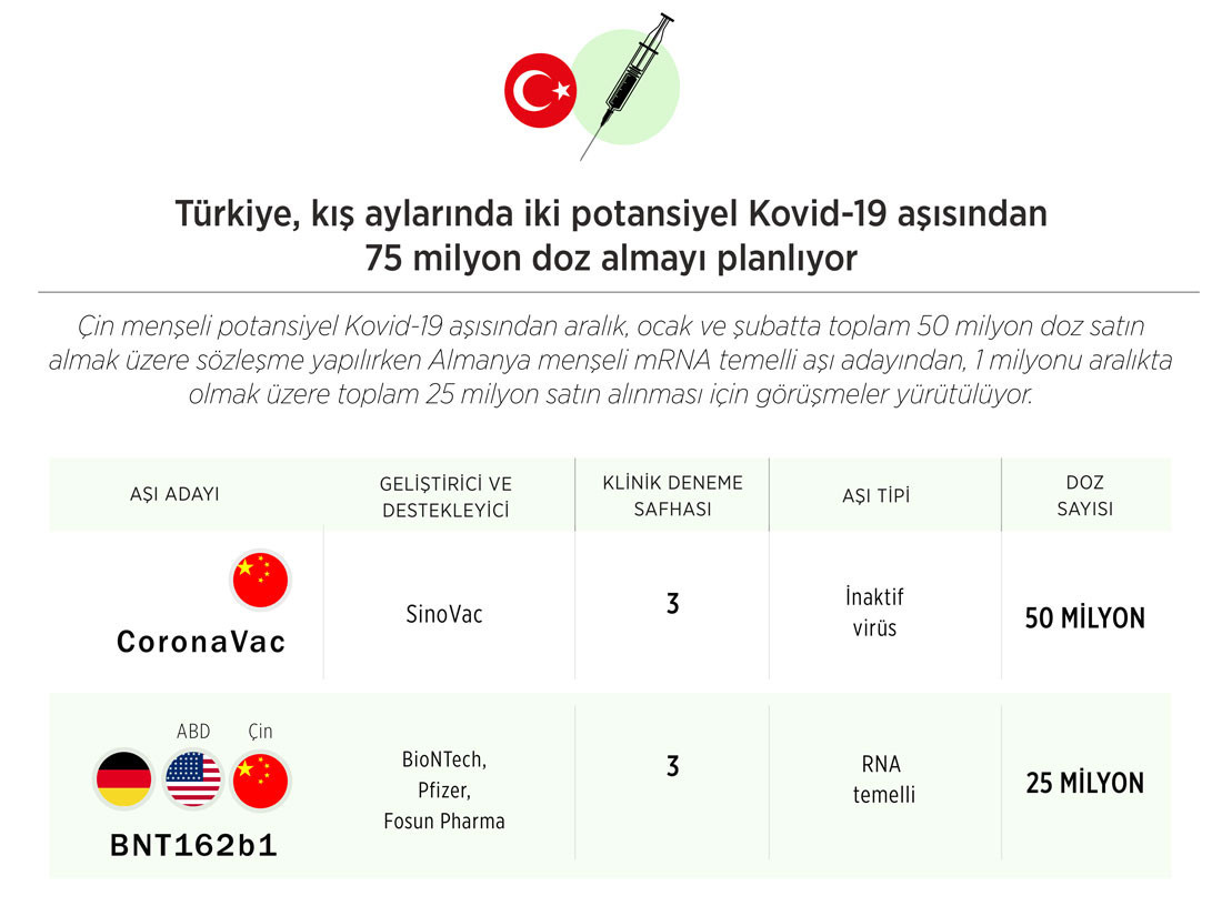 İkişer doz uygulanan bu aşılardan toplam 75 milyon doz sağlanması halinde, Türkiye nüfusunun yarısına yakınının kış aylarında aşılanabilmesi mümkün olacak.