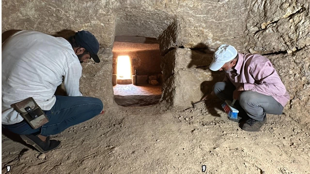 Başlatılan kazı çalışmasında oda mezar içerisinde tapınma alanı ve 5 mezar gün yüzüne çıkarıldı.