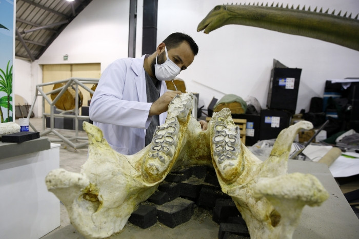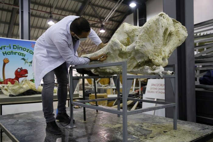 Kazıda çıkarılan çeşitli hayvanlara ait fosiller, Kayseri Bilim Merkezi'nde uzmanlar tarafından titizlikle temizlenerek bakımı yapılıyor.