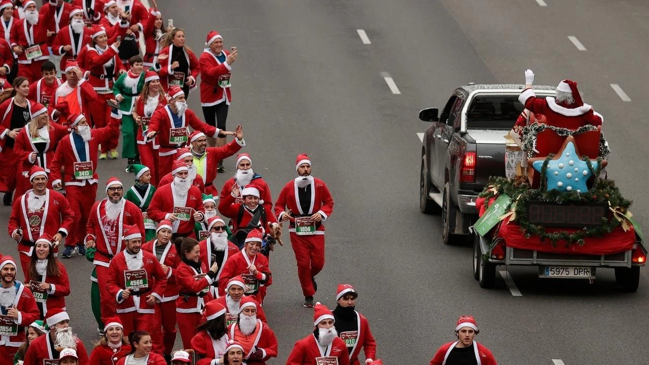 Madrid'de Noel döneminde geleneksel hale gelen Noel Baba Koşusu, Castellana Bulvarı güzergahındaki 4 kilometrelik parkurda yapıldı.