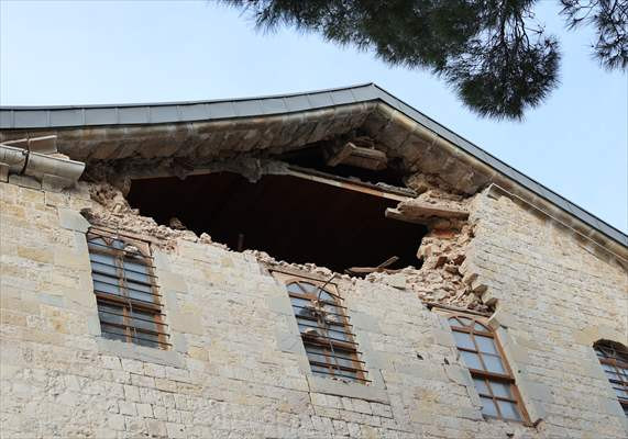 Tarihi yapının duvarlarında sarsıntının şiddetiyle çatlaklar oluşurken, çatısının bir bölümü ise göçtü.