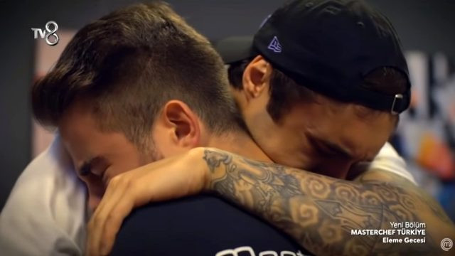 Elemenin ardından kendisini kuliste bekleyen arkadaşlarının yanına giden Furkan, Emir ve Eray'a sarılarak dakikalarca gözyaşı döktü.