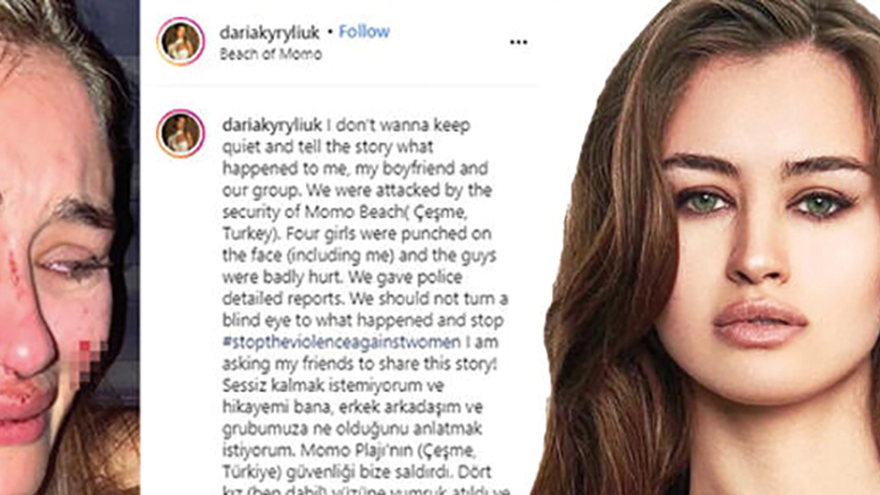 Ukraynalı top model Daria Kyryliuk, tatil için geldiği İzmir Çeşme’deki “The Beach of Momo” isimli plajın güvenliği tarafından darp edildiğini iddia etti.