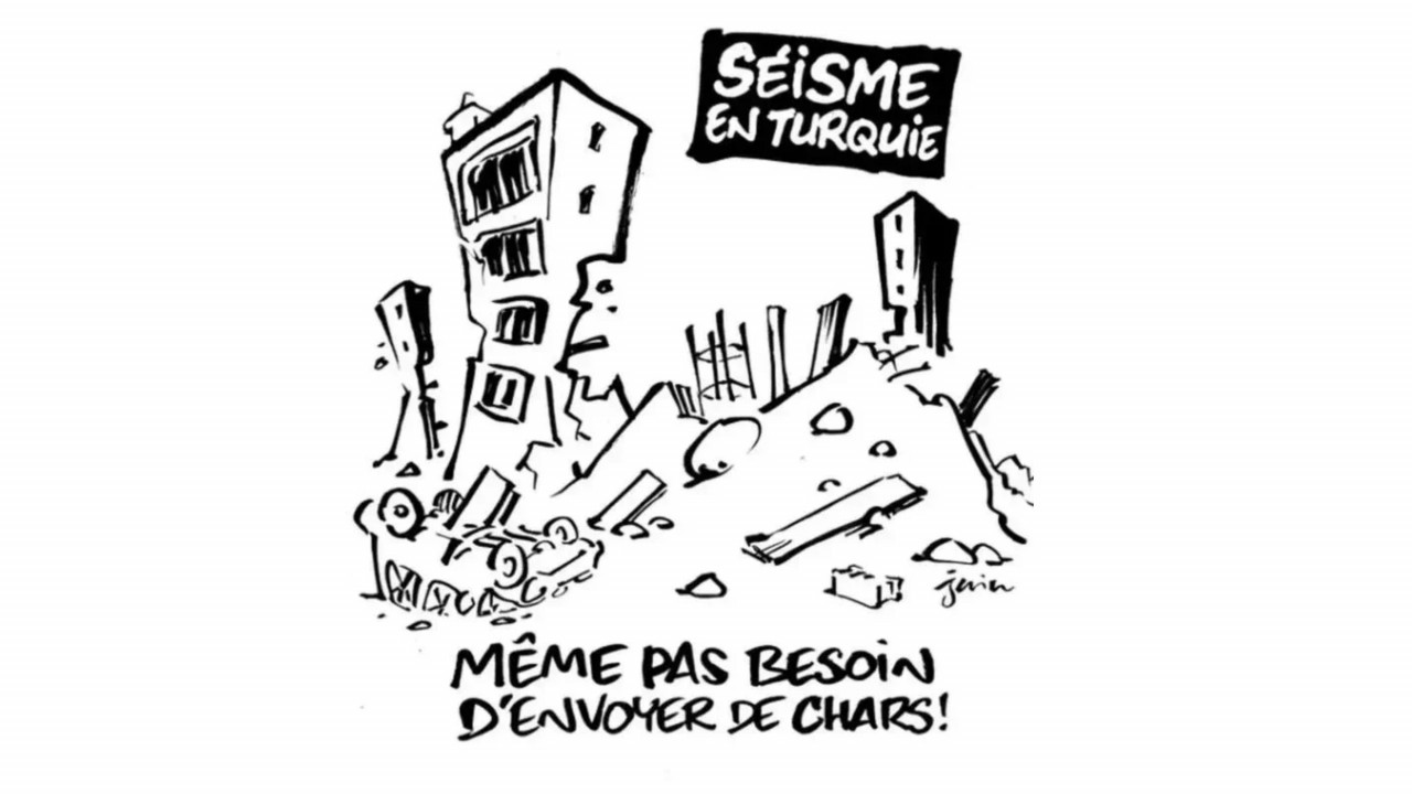 Daha önce Hz. Muhammed’e yönelik hakaret içeren karikatürler yayımlayan Fransa menşeili karikatür dergisi Charlie Hebdo, Kahramanmaraş merkezli depremlerin yaşandığı günün ertesinde “Tank göndermeye ihtiyaç kalmadı” şeklinde çirkin ve aşağılık bir karikatür yayınlayarak büyük tepki topladı.