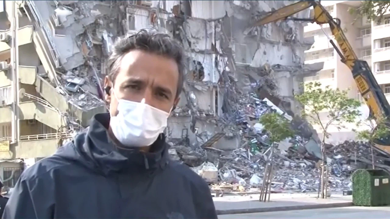 İzmir Bayraklı'da deprem ağır hasarı gören binaların yıkımına devam ediliyor. Onlardan birisi de Cambazoğlu Apartmanı'ydı. Kontrollü yıkım devam ederken bina tam anlamıyla yerle bir oldu. NTV ekibinden Özden Erkuş ise o sırada yayındaydı.