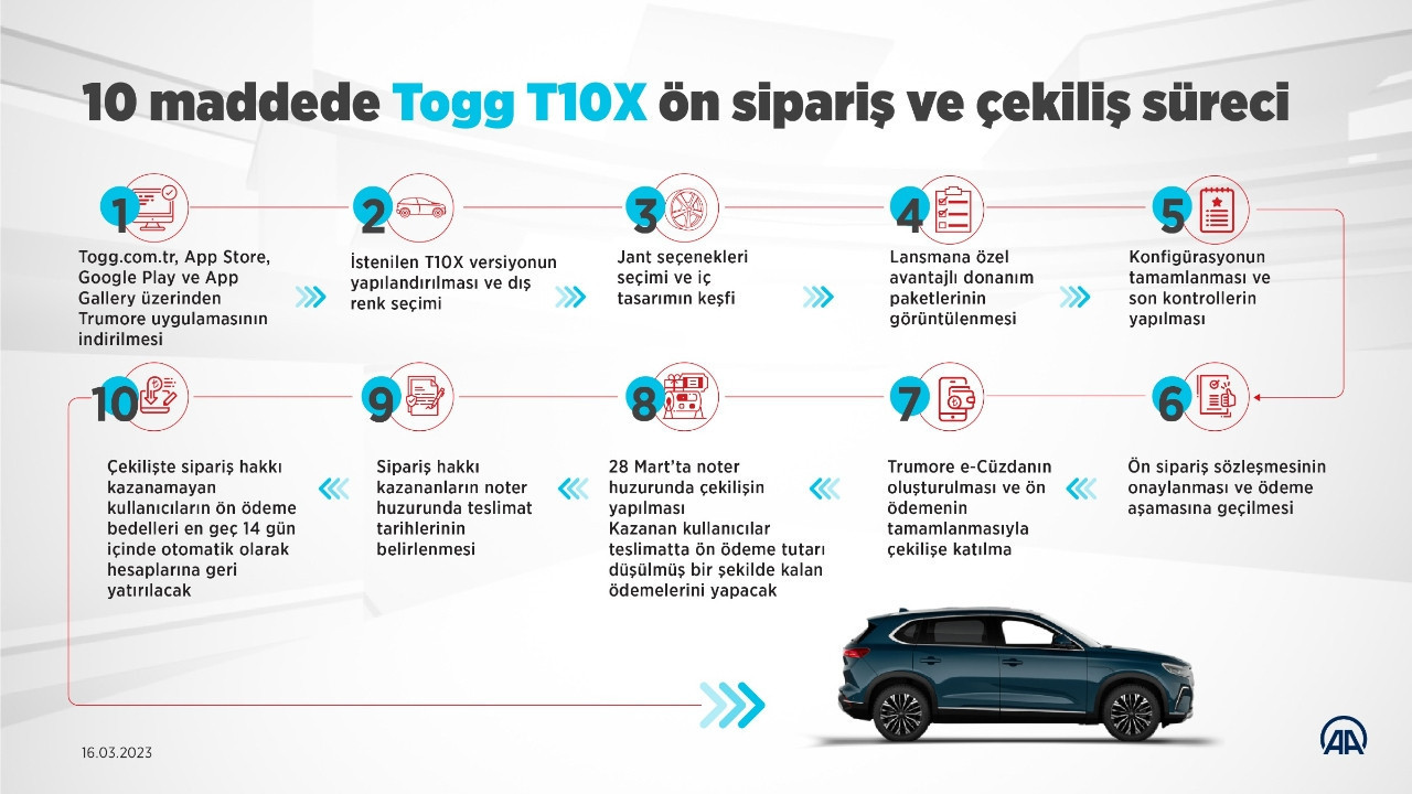 Türkiye’nin elektrikli ilk akıllı cihazı Togg T10X için ön sipariş süreci başladı. İlk 30 saatte 29 bin 275 adet sipariş alan Togg'a vatandaşlar büyük ilgi gösterdi.