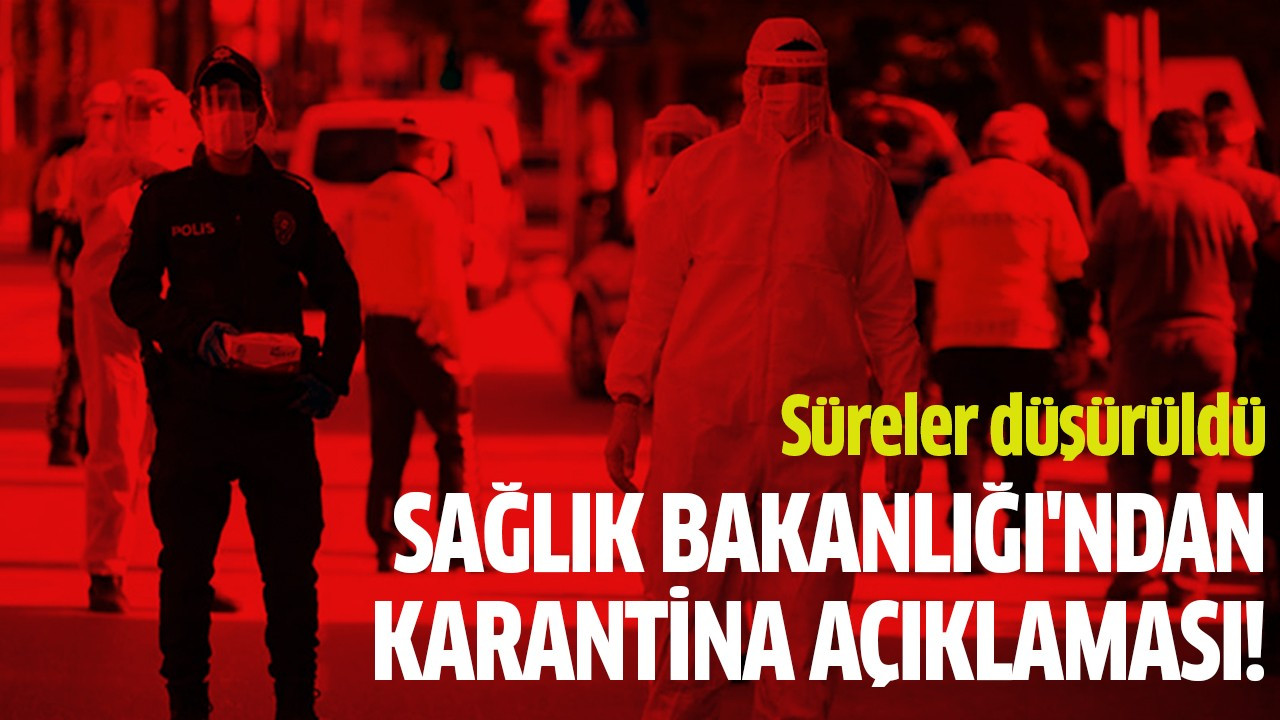 Sağlık Bakanlığı, Kovid-19'un yakın temaslılarında 14 gün olan karantina süresini 10 gün olarak güncelledi. Kovid-19 temaslılarının takibine ilişkin güncellenen rehbere göre yakın temaslı ve semptom gelişmeyenlerde karantina 7. günün sonunda bitirilebilecek.