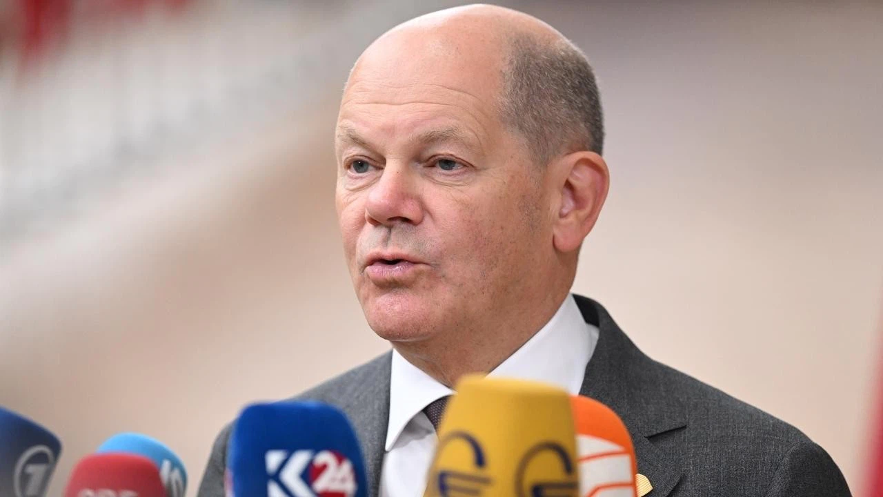 Scholz, Belçika'nın başkenti Brüksel'de, Avrupa Birliği Liderler Zirvesi öncesinde basın mensuplarına açıklamalarda bulundu.