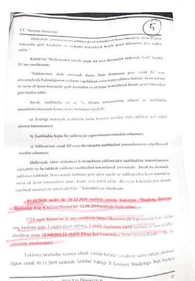 Ancak idare tarafından yürütülen süreç yukarıda da özetlendiği üzere bu şekilde yürütülmemiş, sözleşmenin feshi gecikmeli bir şekilde yapılmıştır" denildi. Öte yandan bu süreçle ilgili açılan soruşturmanın İstanbul Cumhuriyet Başsavcılığınca sürdürüldüğü öğrenildi.
