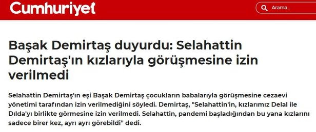 Söz konusu yalana CHP yandaşı Cumhuriyet Gazetesi de çanak tuttu. Gazetede doğruluğu araştırılmaya gerek duyulmadan "Başak Demirtaş duyurdu: Selahattin Demirtaş'ın kızlarıyla görüşmesine izin verilmedi" şeklinde algı peşinde koşan bir habere imza atıldı.