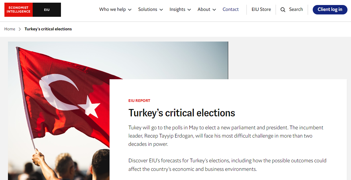 The Economist dergisinin araştırma ve analiz bölümü Economist Intelligence Unit (EIU), Türkiye'deki cumhurbaşkanlığı seçimlerinde Cumhur İttifakı ve Millet ittifakının kazanma ihtimallerini ve seçimden sonra atılacak adımları değerlendirdi.