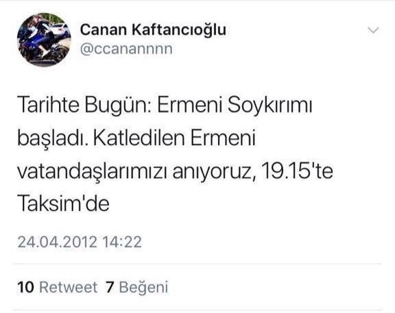 Kaftancıoğlu tweetinde şunları söylemişti: "Tarihte Bugün: 'Ermeni Soykırımı başladı. Katledilen Ermeni vatandaşlarımızı anıyoruz, 19.15'te Taksim'de" Kaftancıoğlu'nun, Ermenilerin Hocalı Soykırımını ise görmezden geldiği unutulmadı.