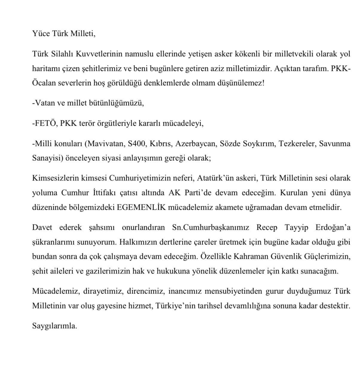 Çelebi sosyal medya hesabından yaptığı açıklamada şu ifadelere yer verdi: