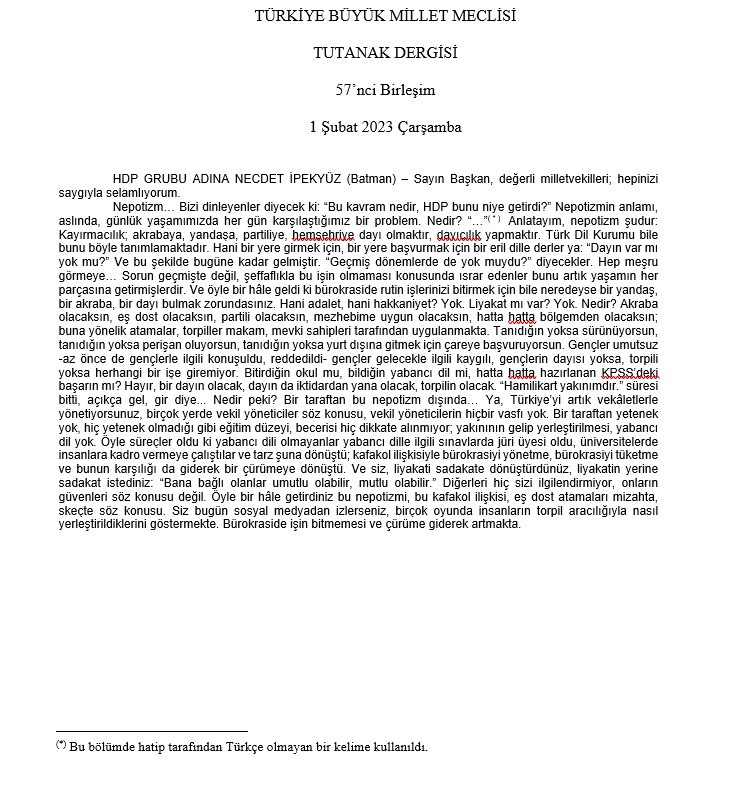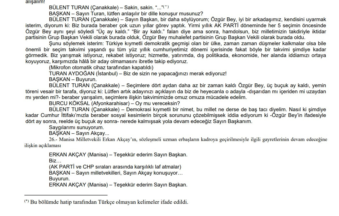 Şentop, şunları ifade etti: "Propaganda için başka bir yol, başka bir isim bulmuşlar gibi geldi bana. 2008 yılından bu yana onlarca soru önergesine cevap verdim, en son Bütçe Komisyonu'nda tekrar bu konuya girdim. Ondan önce Genel Kurul'da da bununla ilgili yaptığım açıklama var. Kürtçe için özel bir uygulama yok. 'Bilinmeyen dil' diye bir ifade kullanılmıyor. Ne oluyor? Resmi dil Türkçe olduğu için tutanaklarda Türkçe kullanılıyor. Türkçe dışında bir kelime kullanıldığı zaman bu tutanağın metnine yazılmıyor, bir dipnot işareti kullanılarak dipnotta atıf 'Türkçe olmayan kelime veya kelimeler kullanılmıştır' diye yazılıyor."