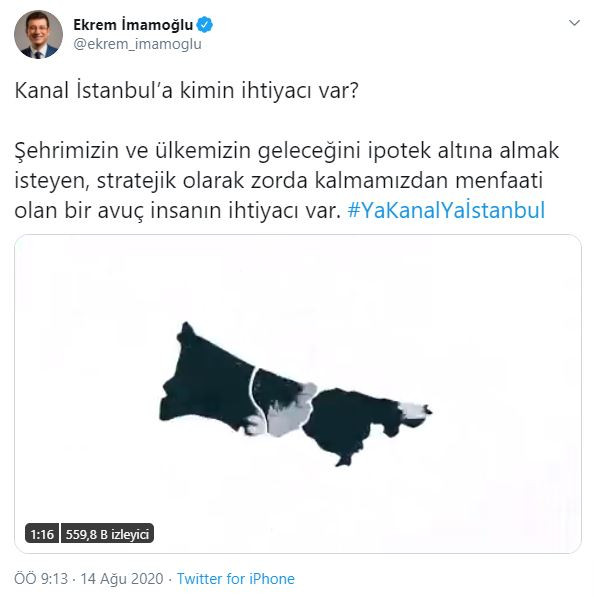 Sosyal medyadan "Kanal İstanbul'a kimin ihtiyacı var?" ile başlayan iletisini attığı görülen İmamoğlu'nun Yunanistan hakkında hiçbir tweet atmadığı gibi Akdeniz konusu hakkında paylaşımda bulunmaması sosyal medya kullanıcıları tarafından tepki çekti.