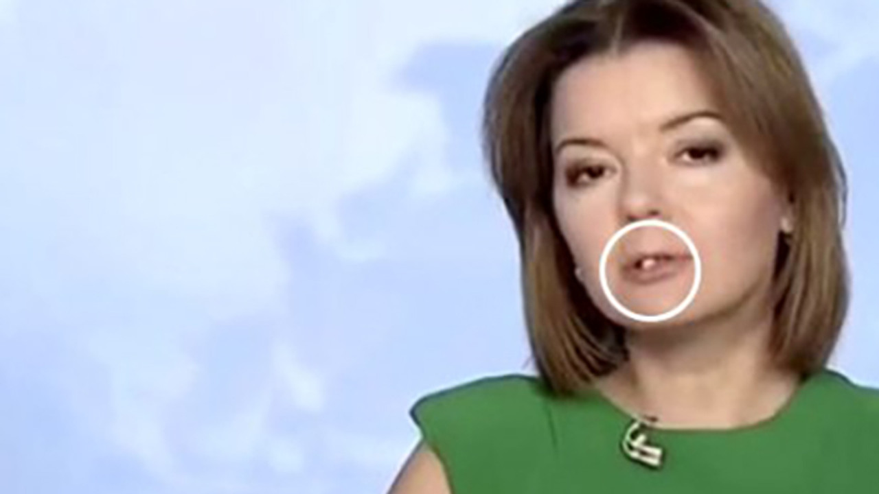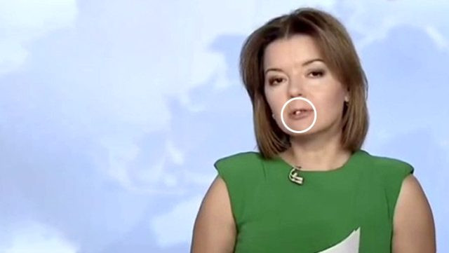 Ukrayna'da haberleri sunan kadın sunucunun dişi, kameralar karşısındayken yerinden çıktı.